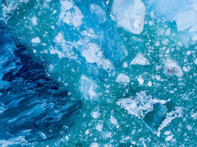 ALASKA SHATTERED ICEBERGS FLOATING NEAR CALVING FACE OF LECONTE GLACIER EAST OF PETERSBURG