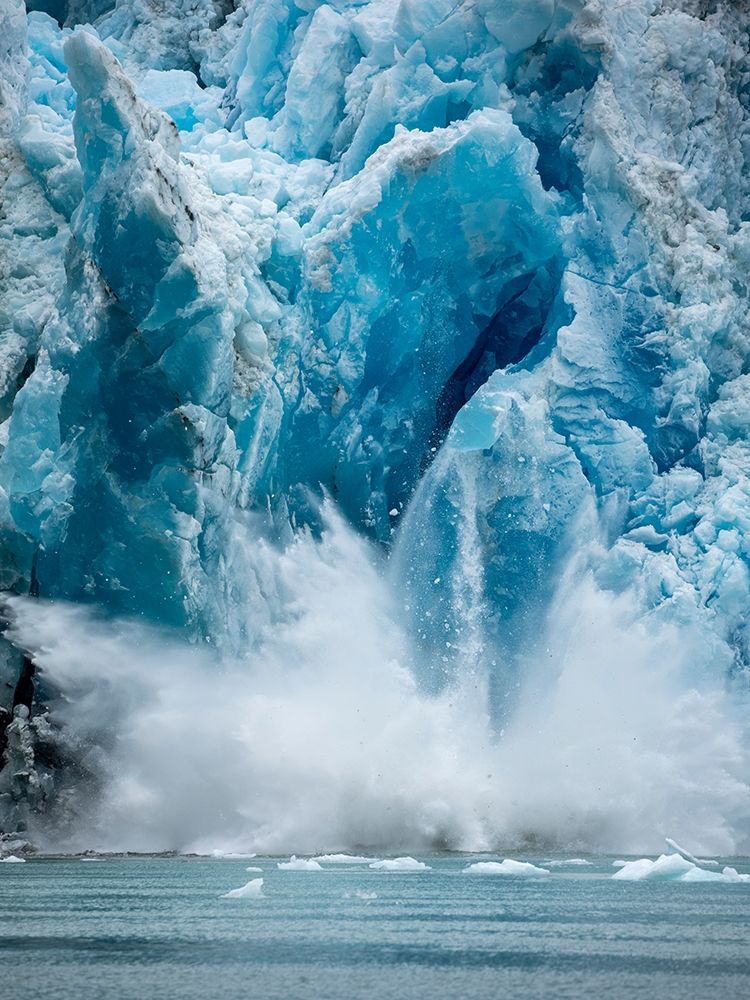 ALASKA-TRACY ARM-MASSIVE ICEBERG CALVING FROM FACE OF SOUTH SAWYER GLACIER IN TRACY ARM
