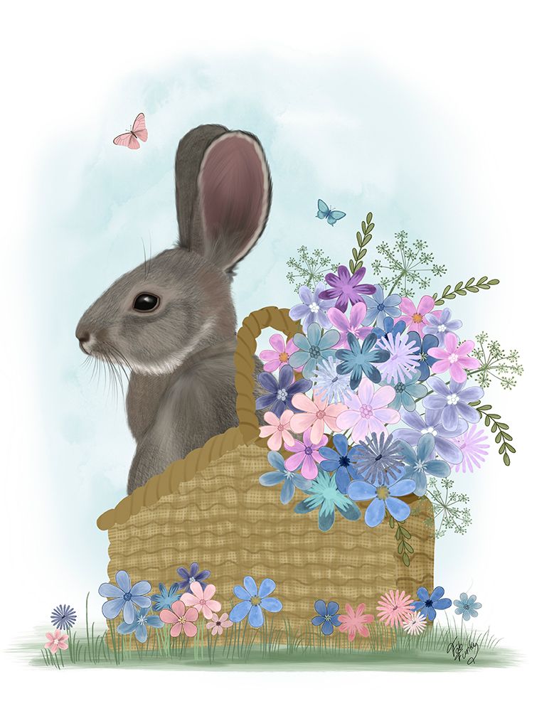 BUNNY IN BASKET WITH FLOWERS