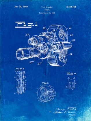 PP390-FADED BLUEPRINT MOTION PICTURE CAMERA 1932 PATENT POSTER