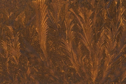 MICHIGAN, FROST PATTERNS ON WINDOW AT SUNRISE