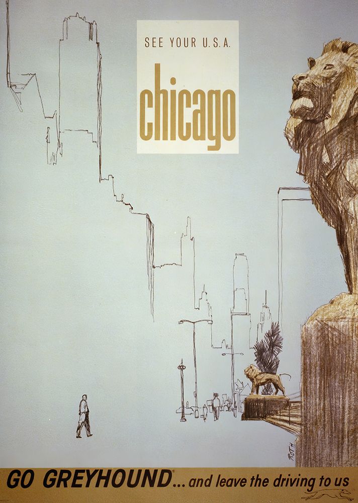 CHICAGO VINTAGE GREYHOUND TRAVEL POSTER