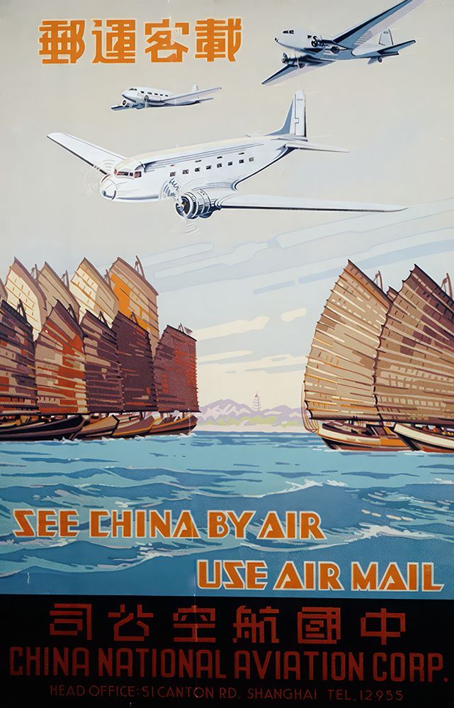 CHINA BY AIR VINTAGE AIRLINE TRAVEL POSTER
