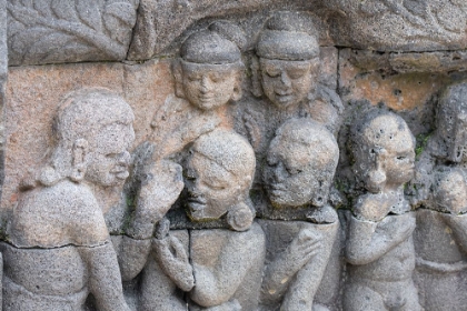 INDONESIA-JAVA-BOROBUDUR. LARGEST BUDDHIST MONUMENT IN THE WORLD. CARVED STONE FIGURES