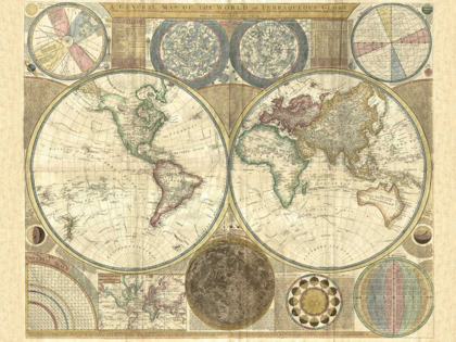 DOUBLE HEMISPHERE MAP OF THE WORLD 1794