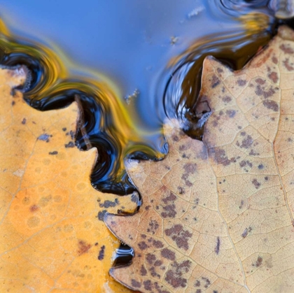 ME, ACADIA NP LEAVES FORM PATTERN ON POND WATER