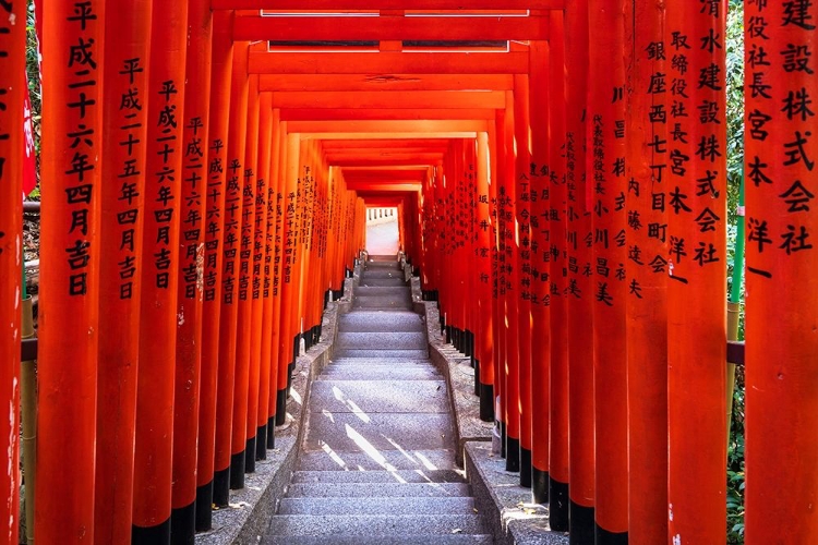 FAMOUS TORII-OR GATES OF THE ENTRANCE TO THE HIE SHRINE IN TOKYO-JAPAN