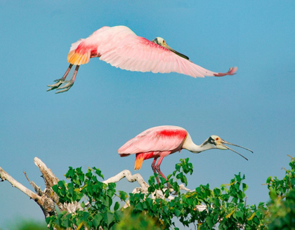 ROSEATE SPOONBILLS ON NEST-HIGH ISLAND-TEXAS USA