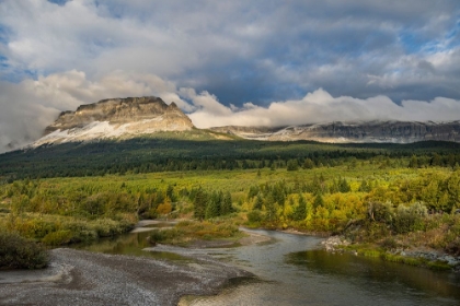 COAL CREEK WITH CLOUDCROFT PEAKS IN LATE AUTUMN IN GLACIER NATIONAL PARK-MONTANA-USA