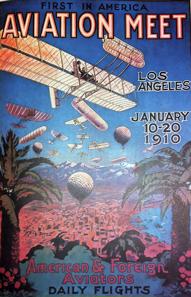 LOS ANGELES AVIATION MEET VINTAGE TRAVEL POSTER 1910