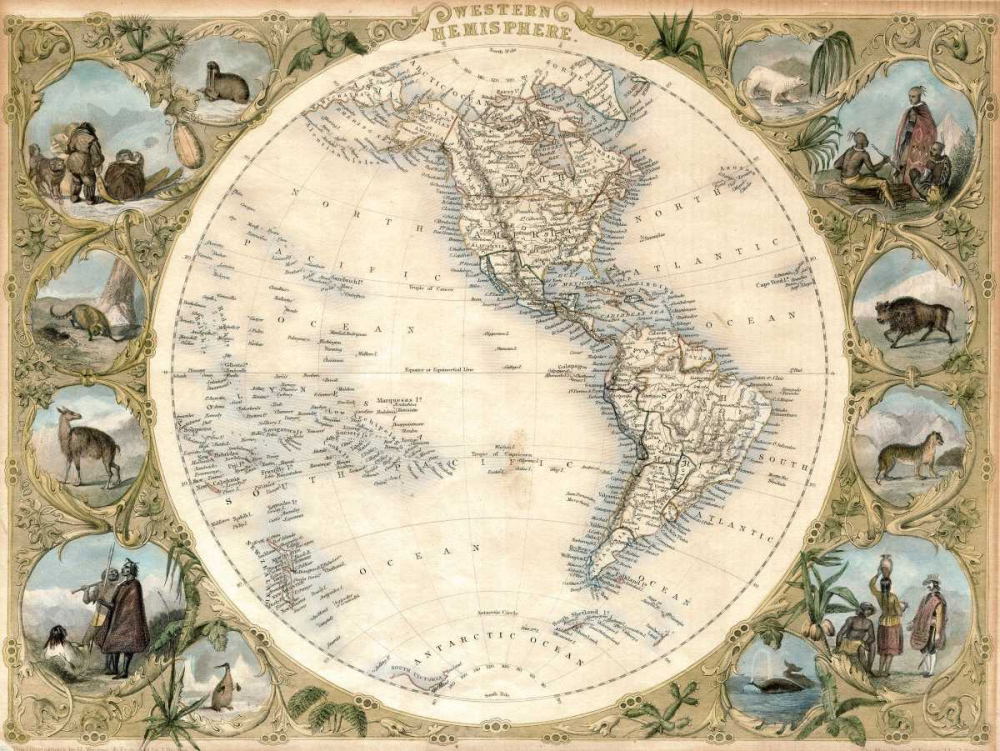 MAP OF THE WESTERN HEMISPHERE, 1850
