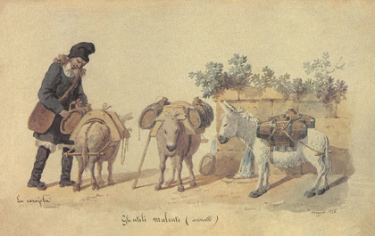 FARMER WITH MULES IN THE COUNTRYSIDE