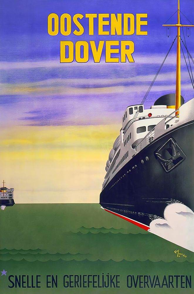 OOSTENDE DOVER VINTAGE SHIP TRAVEL POSTER