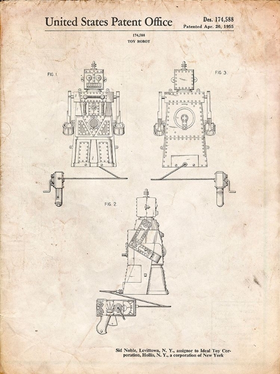 pp1014-vintage parchment robert the robot 1955 toy robot patent poster