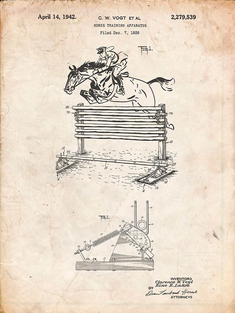pp507-vintage parchment equestrian training oxer patent poster
