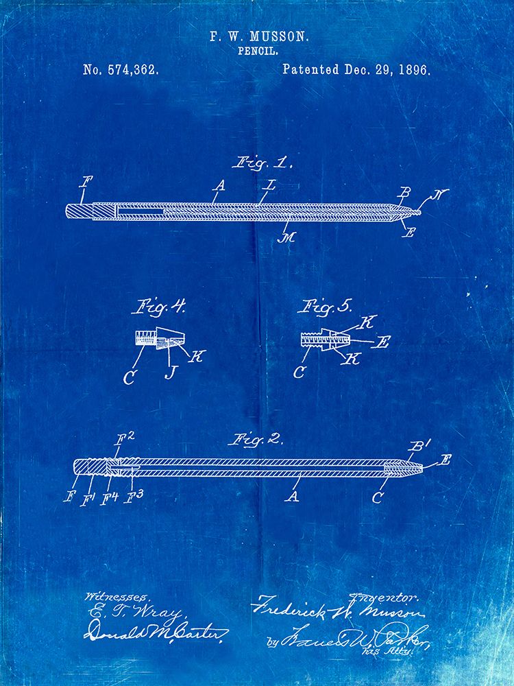 pp984-faded blueprint pencil patent poster