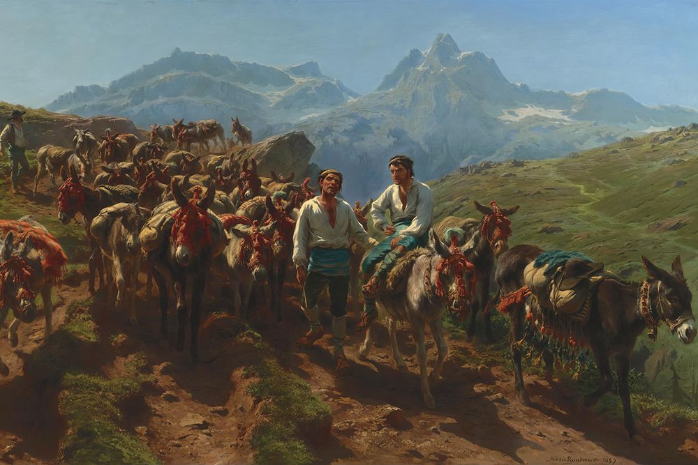 SPANISH MULETEERS CROSSING THE PYRENEES 1857