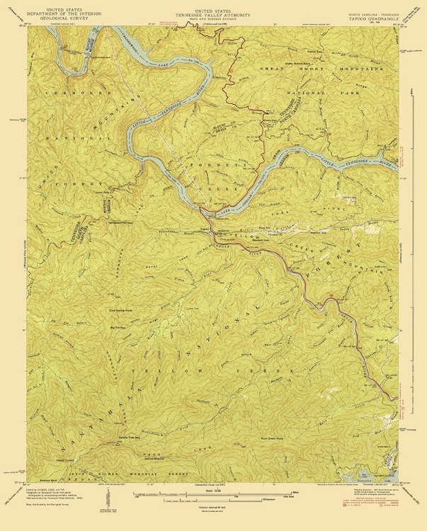 TAPOCO NORTH CAROLINA TENNESSEE QUAD - USGS 1940