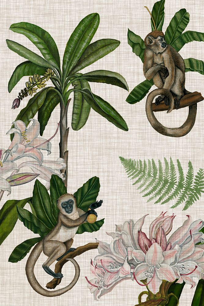 TROPICAL MONKEY ON LINEN I
