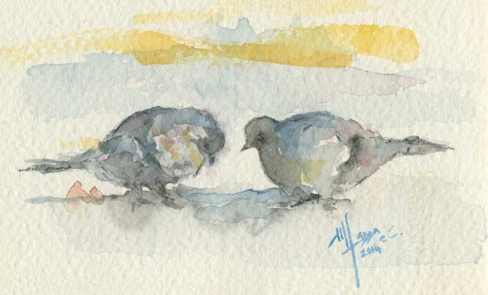 TWO PIGEONS ON THE SAND
