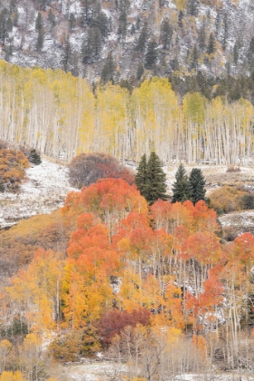 USA-COLORADO-UNCOMPAHGRE NATIONAL FOREST FRESH AUTUMN SNOW ON ASPENS AND EVERGREENS