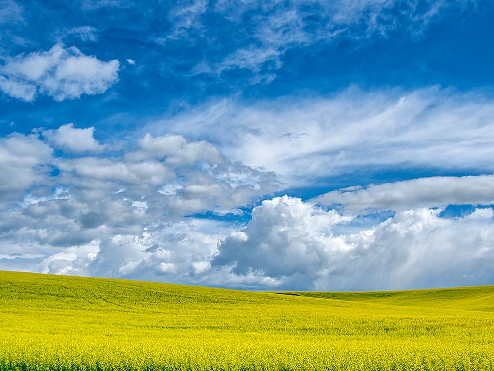 USA-WASHINGTON STATE-PALOUSE-SPRING CANOLA FIELD WITH BEAUTIFUL CLOUDS