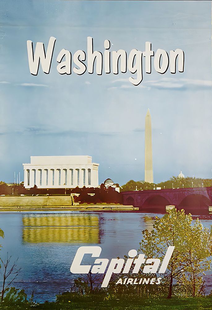 WASHINGTON DC VINTAGE AIR TRAVEL POSTER