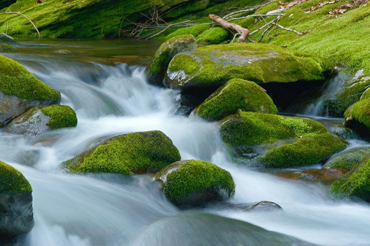 WATER FALLING OVER BOULDERS ON ROARING FORK MOTOR NATURE TRAIL